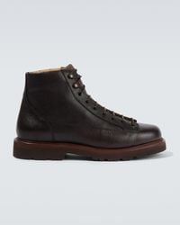 Brunello Cucinelli Men's Brown Lace-Up Herringbone-Detail Boots