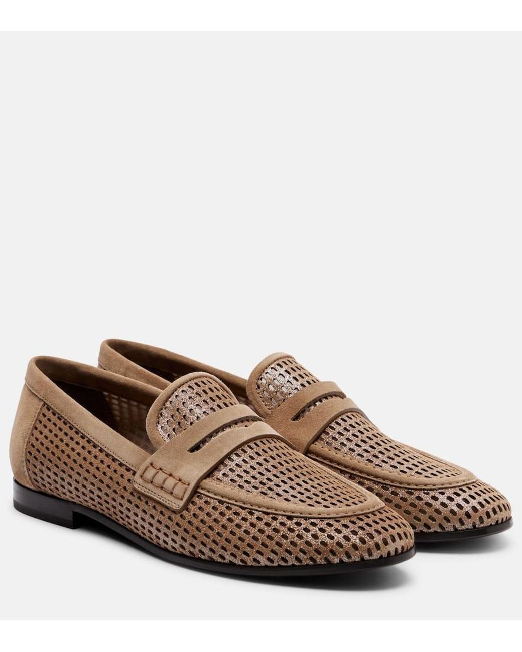 - Perforated Suede-Trimmed Leather Penny Loafers