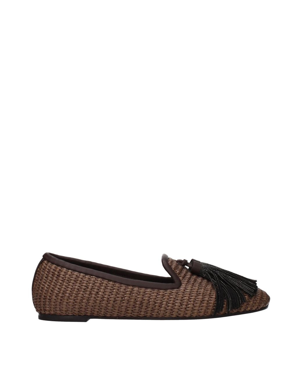 The item with MPN MZ39C2937C193 and code F85220 in raffia of colour brown belongs to the moccasins category by designer Brunello Cucinelli. It features characteristics such as fringes, studs. Colour: brown