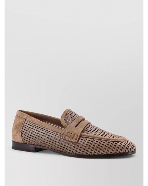 Rounded toe | Suede upper | Leather sole | Perforated design | Embossed stitching | Midsole with engraved logo | Slip-on style Colour: brown