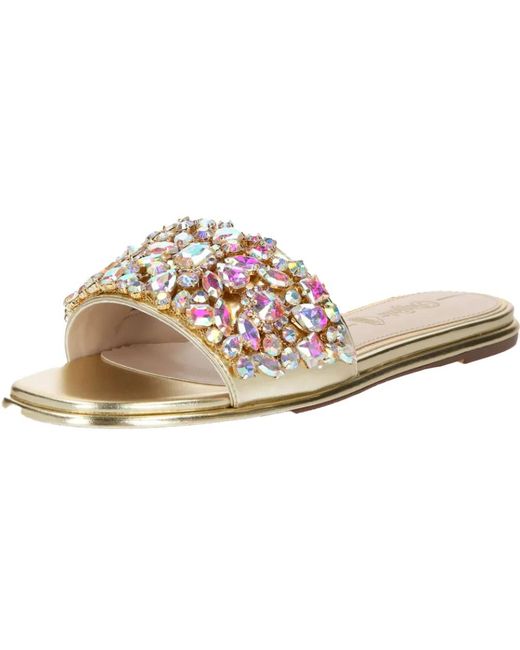Buffalo Sandalo is a gold-tone slider designed for easy slip-on wear. Its metallic finish makes it a standout option for casual summer looks. Key attributes: Yellow | Oro | Gold | Slip-on | Slide silhouette Colour: yellow