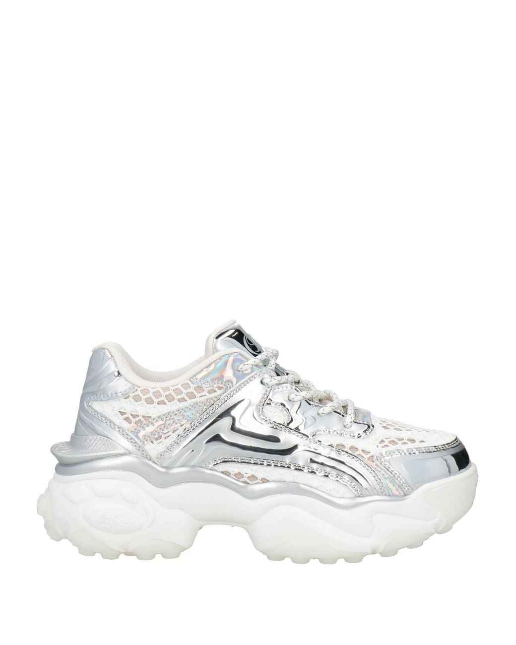 BUFFALO. chunky trainers, mesh, synthetic material, metallic, two-tone, brand logo, lace-up, round toe, technical fabric inner, rubber sole. Textile fibres, Synthetisches Material. Colour: white