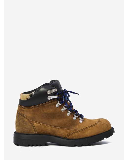 Suede leather boots with a lightweight sole in brownjute color. Featuring lace-up closure with steel D-ring eyelets, round toe, and padded leather ankle with a knitted insert in sand-colored Burberry Check. Equestrian Knight Design on the sole. Dustbag included.Heel height: 3 cmITA size