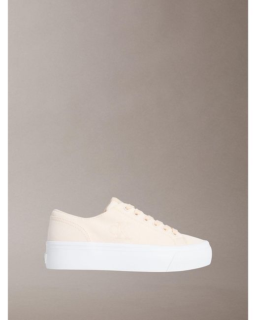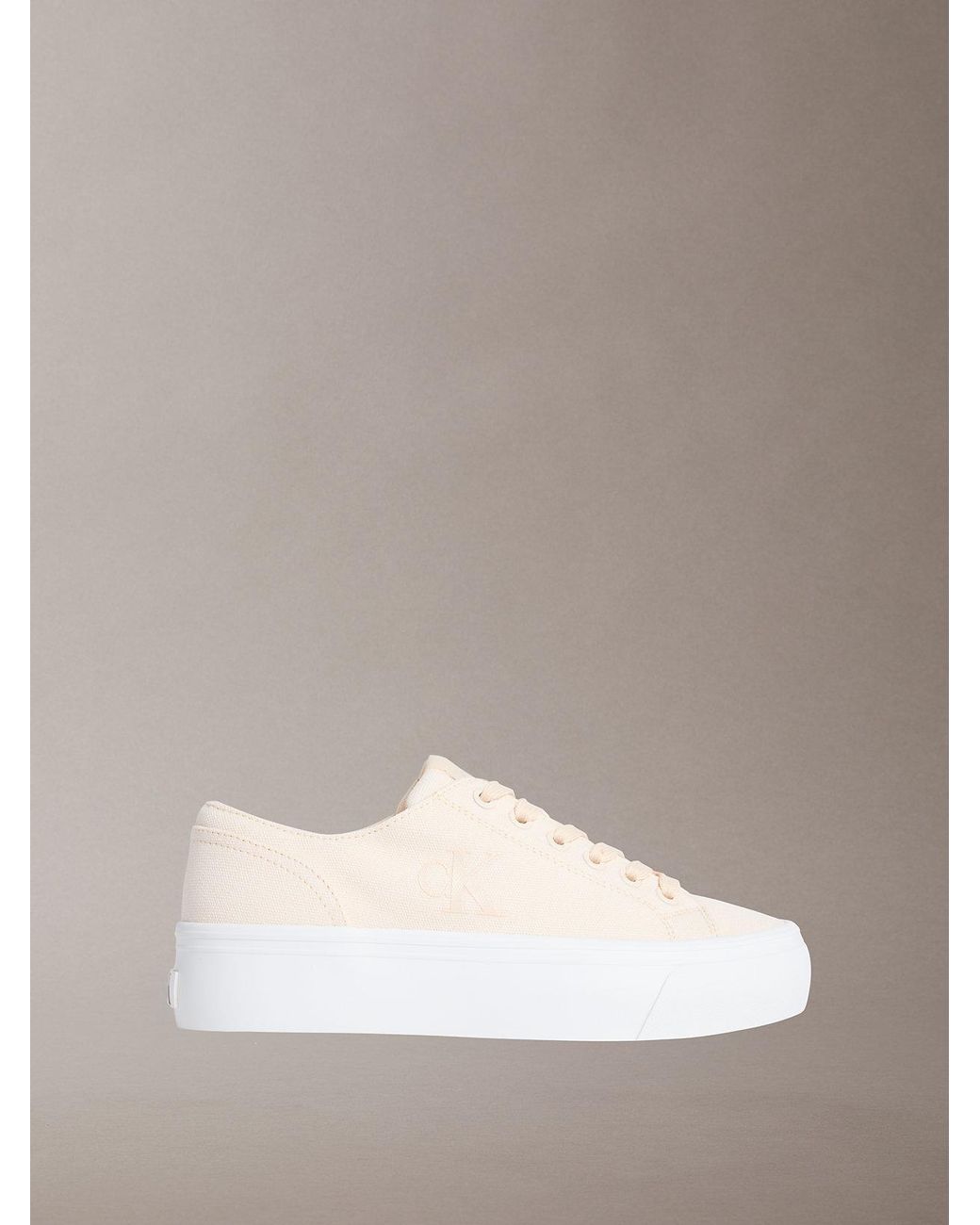 The trainer upper is crafted with 60% recycled cotton, created by reprocessing existing cotton materials.<br><br>• recycled blend cotton canvas upper<br>• comfortable foam insock with extra cushioning<br>• cotton twill lining<br>• natural rubber outsole<br>• heel height: 3cm/1.2in<br>• lacquered metal eyelets<br>• Calvin Klein logo on the heel, tongue and side<br><br>country of origin: China