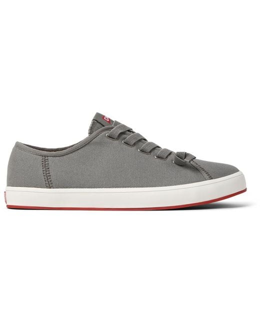 Grey textile trainers for men with non-removable PU footbeds, elastic laces and rubber outsoles. Inspired by Mediterranean simplicity, this redesigned trainer combines breathable recycled textile uppers with lasting cushioning. Colour: grey