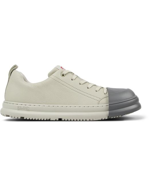 CAMPER - Grey leather women's trainers with recycled OrthoLite® non-removable footbeds and EVA outsoles (20% recycled). Junction Runner is a customizable two-in-one trainer made with premium materials. Each pair includes a set of interchangeable toe caps. Extra toe caps sold separately. Colour: grey