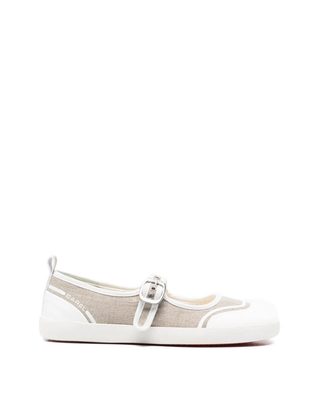 Beige buckle-strap round toe rubber sole pull-tab Size: 39. Gender: Female. Material:Fabric/Fabric/Rubber/Rubber. Colour: white