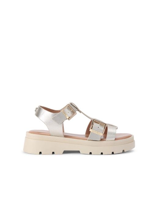 The Bormio Sandal is crafted from a gold textured leather alternative with caged style upper. There are two gold buckles fastened the straps and a gold Icon C stud on the back of the ankle. This product features All Day Long technology. Colour: natural