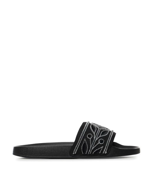 Embroidered terry upper, round open toe, rubber sole, color: black Colour: black