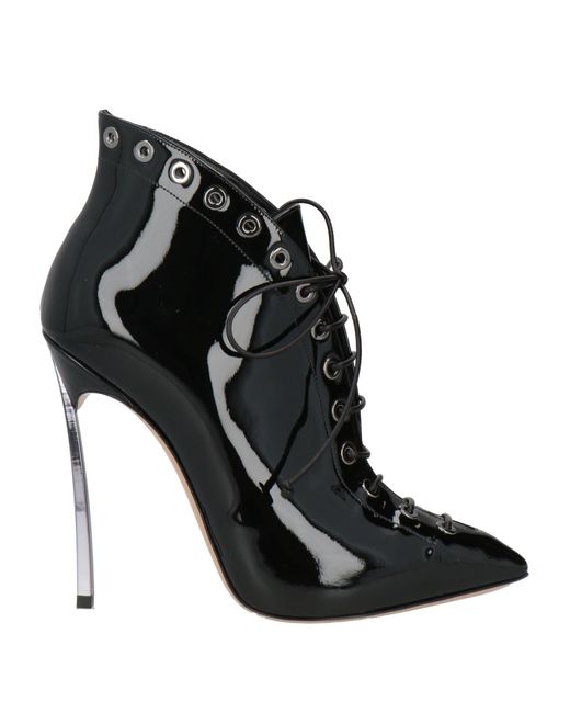 CASADEI. lace-up ankle boots, patent leather, plain colour, no appliqués, leather lining, pointed toe, spike heel, leather sole, contains non-textile parts of animal origin. Leather.