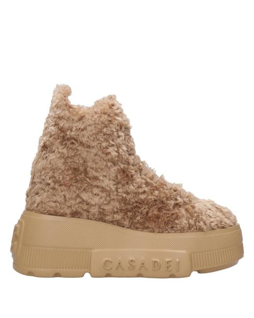 - Leather - Faux fur outer lining - Cotton lace-up closure - Rubber platform bottom - Logos on the outer side and back - Height of the gabale above the ankle - Platform height 7cm - Made in Italy Colour: natural
