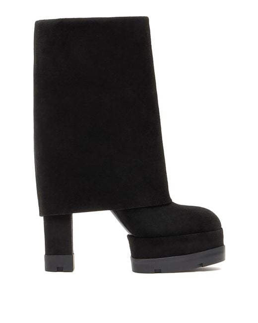 Reversible nancy casadei boot in black suede leather, which gives the possibility of being worn with two different functions, thanks to the soft upper that can be turned up. the vertiginous chunky heel is balanced by the addition of the platform to g Colour: black
