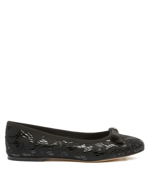 Black lace fabric bow detail round toe flat sole logo plaque Size: 41. Gender: Female. Material:Polyurethane/Calf Leather/Cotton/Polyester/Nylon/Calf Leather. Colour: black