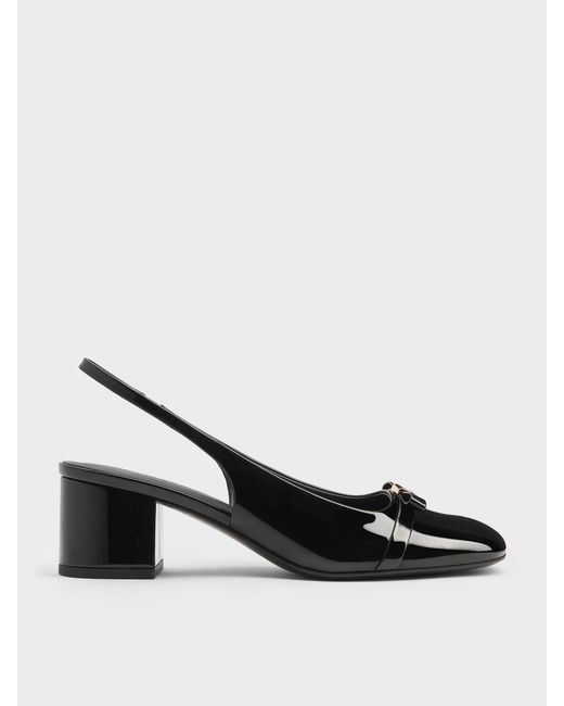 - Dorian Patent Bow Block-Heel Slingback Pumps