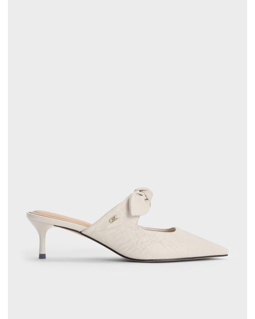 Women's White Jayce Crinkle-Effect Leather Knot-Bow Kitten-Heel Mules