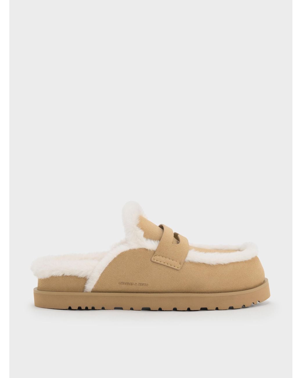 These mules in sand feature furry trims, ridged flatform soles, penny straps and rounded toes. Designed for casual ease, they will add playful tactility and warm comfort to your cool-weather looks.This product contains recycled material. Colour: white