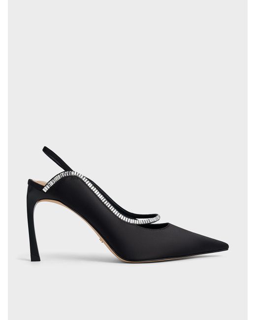 - Recycled Polyester Crystal-Embellished Pointed-Toe Slingback Pumps