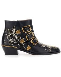 Go to MiintoSusan Suede Heeled Ankle Boots by the fashion house Chloé embody sophisticated luxury in Parisian style. The precisely contoured ankle-length upper, finished with an elegant, tapered almond toe, subtly accentuates the slenderness of