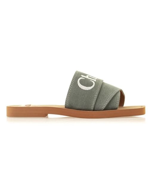 Step into summer with Chloé`s Logo Woody Sandals, designed for effortless style and comfort. These sliders are crafted with a focus on fashion-forward elegance, perfect for any casual occasion. Key attributes: Green | Fabric | Open square toe | Flat sole | Logo embroidery | Dimensions & fit: Regular fit | Colour: green