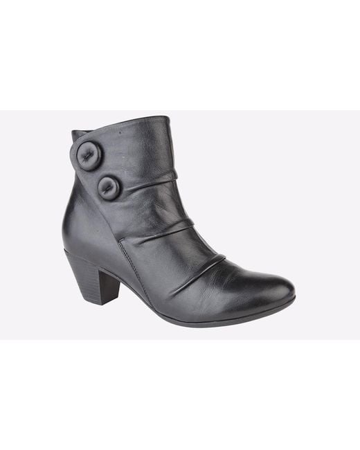 Sleek and stylish, Cipriata deliver these women's Emma boots, boasting a chic black leather upper with ruched button detailing, and a sumptuous memory foam footbed for all day comfort. - Soft Leather - Button detailing - Zip fastening - Memory foam footbed - TPR Sole. Apx.50mm Heel Colour: grey