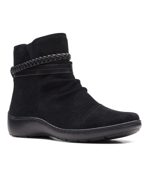 Clarks Women's Cora Braid Boot Ankle, Black Suede, 8.5 Wide.
