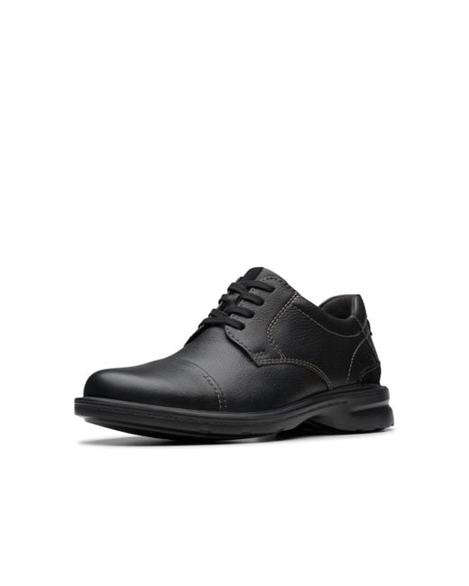 Clarks Collection new heritage casual shoe Gessler Cap melds elevated comfort with classic design Premium black tumbled leather upper EVA heel cup with foam footbed for all-day comfort Flat waxed lacing offers a secure, personalised fit Light and grippy EVA sole keeps steps light and free while delivering ultimate traction underfoot. Colour: black