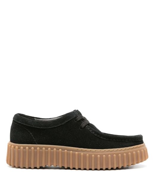 Black calf suede branded suede tag moc stitching square toe front lace-up fastening branded leather insole flatform sole Size: 37. Gender: Female. Material:Calf Suede/Calf Suede/Rubber.