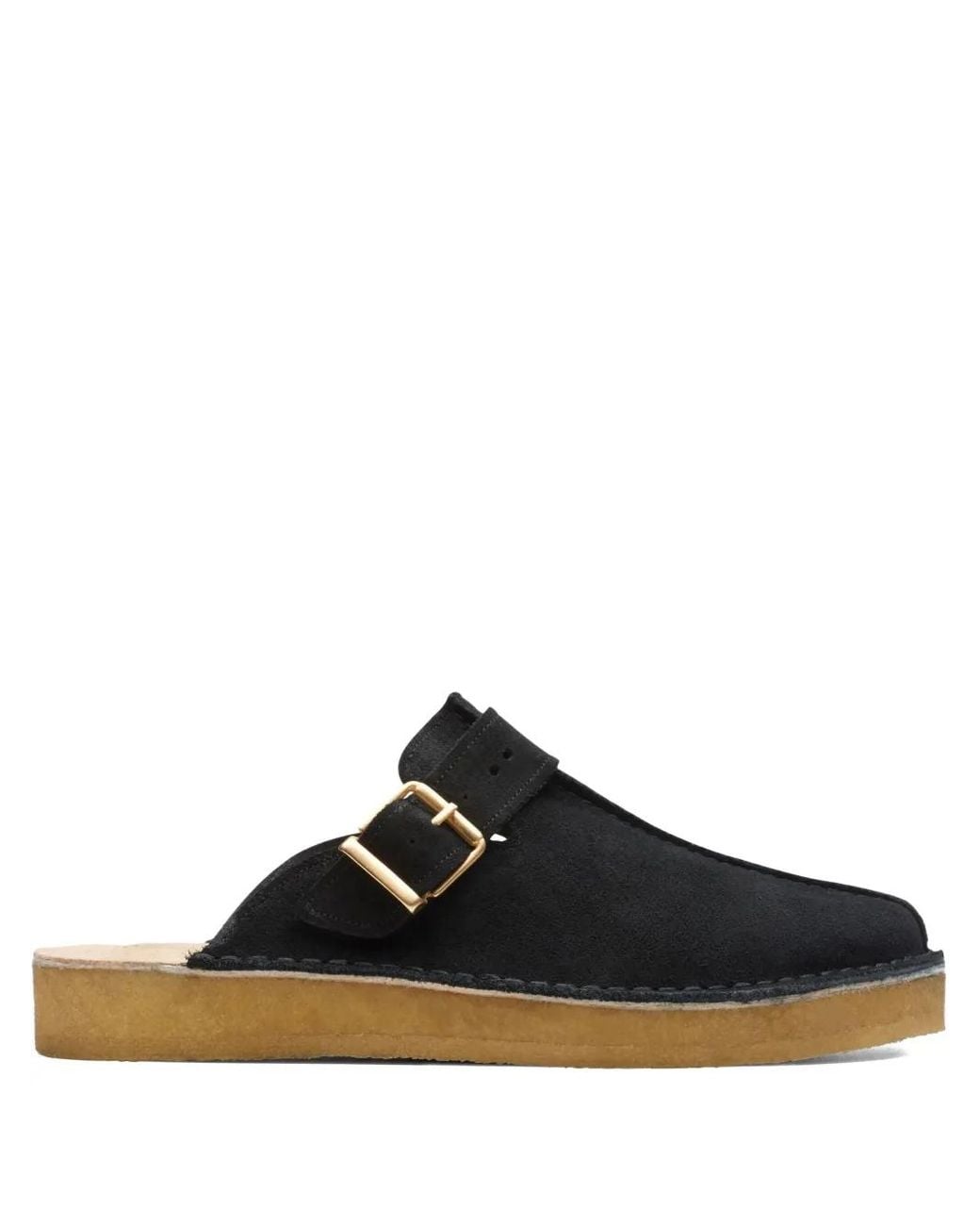 Black suede buckle fastening open heel rubber sole Size: 8. Gender: Male. Material:Calf Suede/Fabric/Rubber. Colour: black