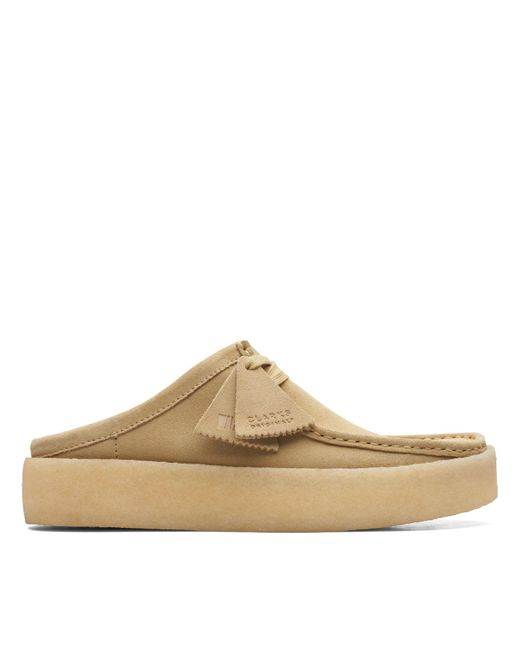 Consciously crafted Wallabee Cup Lo is prepped for summer wear with its slip-on open-back silhouette and all the flexibility expected from our authentic moccasin construction. Recycled eco suede uppers in a versatile maple shade pair perfectly with its natural pebble crepe sole while classic fobs sign off in true Clarks Originals style.Recycled maple eco suede upperNatural rubber pebble crepe soleRecycled polyester laces with fused tipFinished with recycled Clarks Originals fobs Colour: natural
