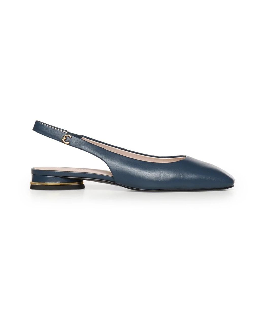 Coccinelle Ballerinas are square-toe slingback flats crafted with a calfskin leather upper, ideal for refined everyday wear. Key attributes: Blue | Deep blue | Calfskin leather | Thunit sole with injected rubber | Slingback strap | Leather lining | Square toe | Composition & care: Upper: calfskin leather | Lining: leather | Sole: thunit with rubber injection Colour: blue