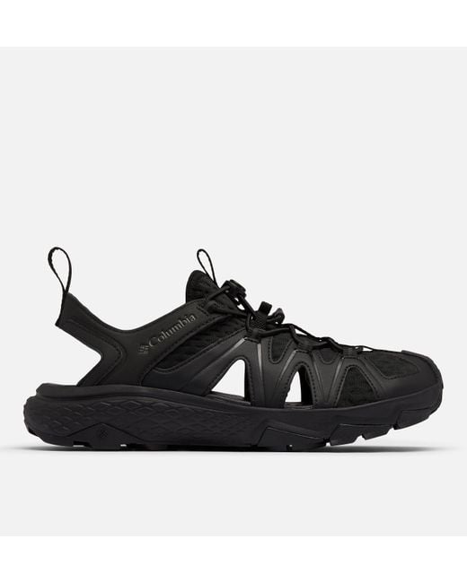 Combining the support of a shoe with the breathability of a sandal, these shandals are lightweight and comfortable and ready to hit the trails. The cage design upper with breathable mesh and toe box offers ventilation and protection with a quick lace system for easy adjustment on the go. Colour: black