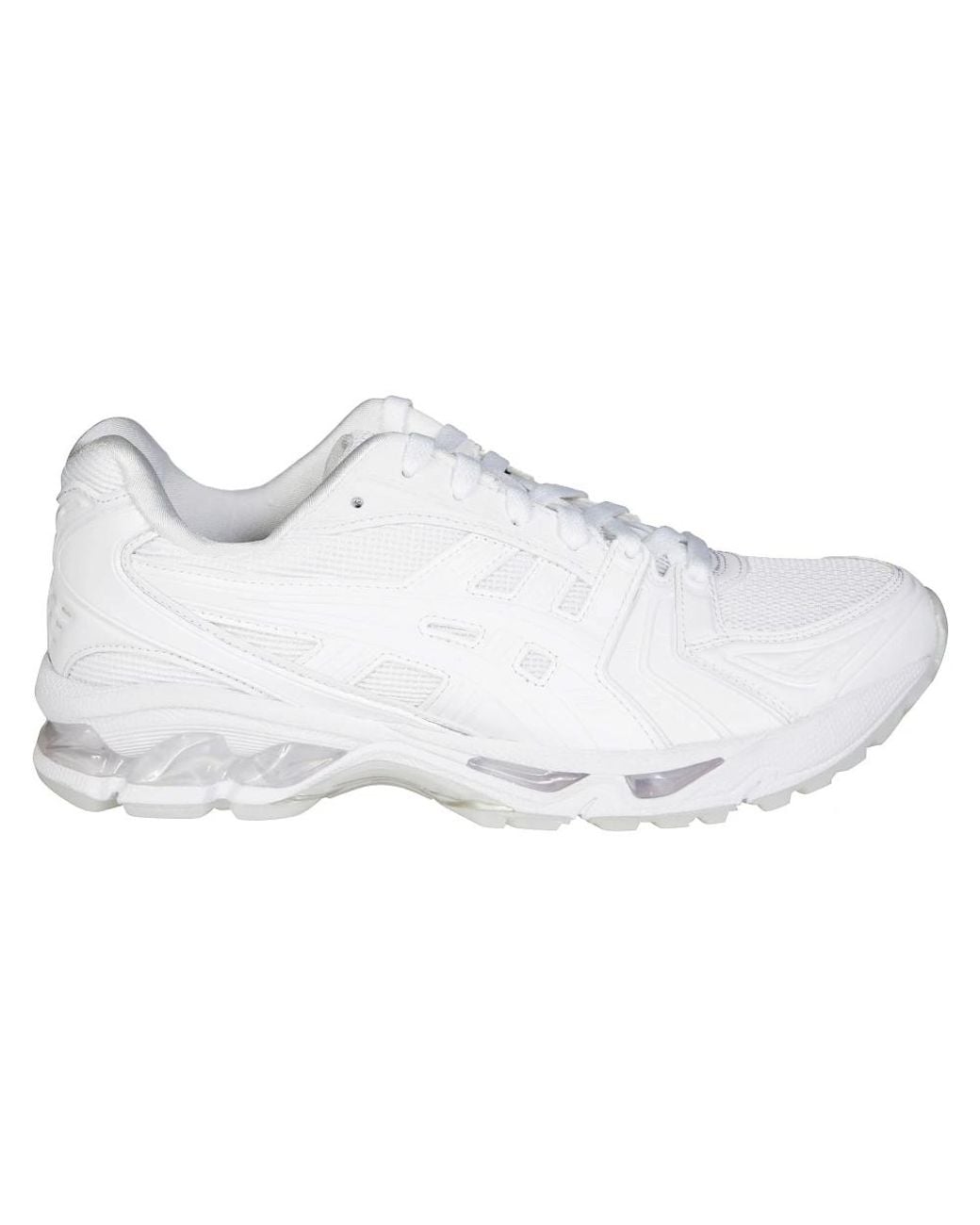 Comme des Garçons presents the Gel-Kayano 14, a minimalist reinterpretation of Asics' performance runner that pairs breathable mesh with synthetic overlays and GEL cushioning for everyday comfort and streetwear styling. Key attributes: White | Bianco | Mesh, Synthetic leather | GEL cushioning for shock absorption | Breathable upper | Rubber outsole for traction | Lace-up fastening | Padded collar | Low-top silhouette | Minimalist branding | Synthetic overlays | Round toe | Composition & care: Upper: Mesh | Overlays: Synthetic leather / Textile | Lining: Mesh | Sole: Rubber Colour: white