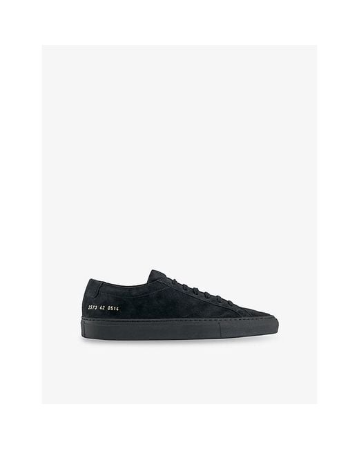 Common Projects suede trainers100% suedeLace-up fasteningRound toe, low top, branded printSpecialist leather cleanUpper: 100% suedeLining: 100% leatherSole: 100% rubber Colour: black