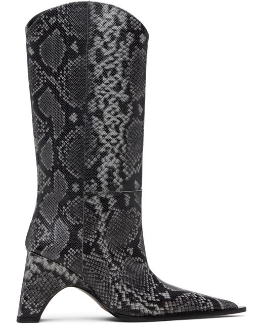 Mid-calf snakeskin-embossed leather boots. · Pointed toe · Buffed leather lining · Covered block heel with rubber injection · Leather sole · Heel: H3.25 Supplier color: Grey/Black Colour: black
