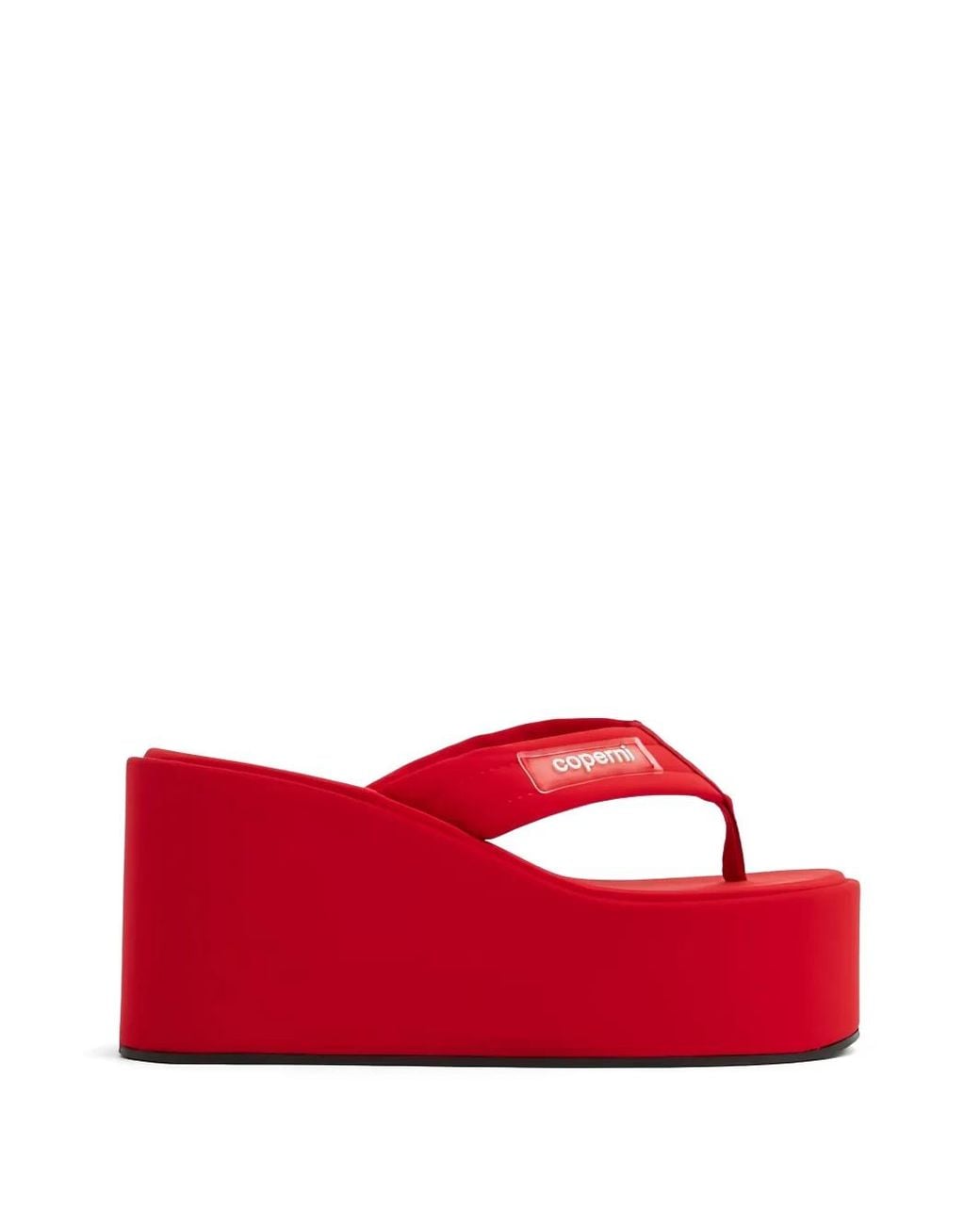 Red platform sole thong strap logo detail Size: 36. Gender: Female. Material:Fabric/Fabric/Rubber.
