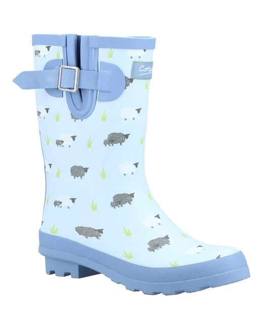 Women's Blue Ladies Farmyard Sheep Mid Calf Wellington Boots