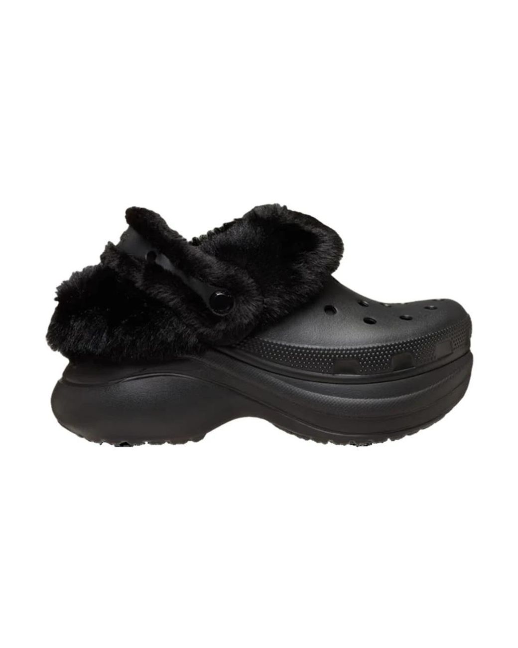 Crocs Bae Lined Clog combines an elevated platform with a plush faux-fur interior for warm, casual wear with added height. Built for everyday comfort, it pairs a contoured sole with a cosy lined collar and backstrap. Key attributes: Black | Nero | Croslite foam | Enhanced warmth | Dual Crocs Comfort™ cushioning | 2.4-inch / 60 mm platform height for added lift | Plush faux-fur collar and interior | Fuzzy backstrap with Jibbitz compatibility | Closed vent holes for added warmth | Platform sole | Textured details around heel and toe box | Ultra-contoured outsole | Dimensions & fit: Heel height: 60 mm / 2.4 in (measured from floor to heel rest) | Composition & care: Croslite foam | Faux fur (polyester) | Wipe clean with a damp cloth; air dry. Colour: black