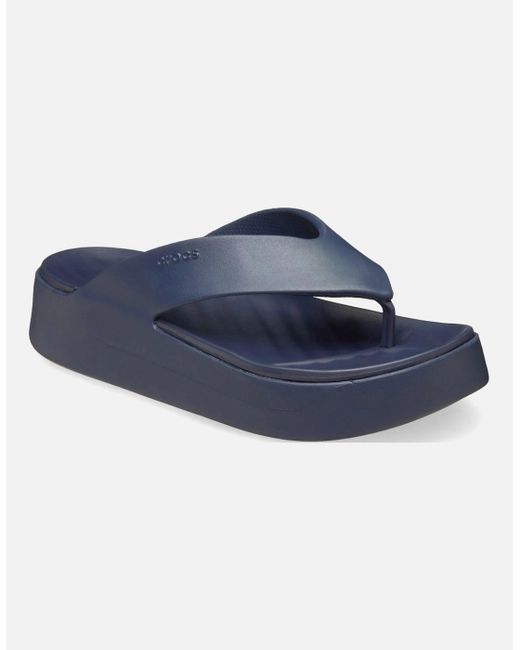 The Getaway Platform Flip features a soft, flexible Free Feel Technology upper that feels like nothing at all, floating on top of your foot and moving with you without restriction. A sandal for every occasion and all your getaways. Key Features: Brand: Crocs Available Shoe Sizes: UK 4/UK 5/UK 6/UK 7/UK 8 Colour: Navy Department: Women Style: Slip On Upper Material: Thermoplastic Customised: No Heel Style: Platform Outsole Material: Thermoplastic Type: Sandal Closure: Slip On Country of Manufacture: China Occasion: Casual