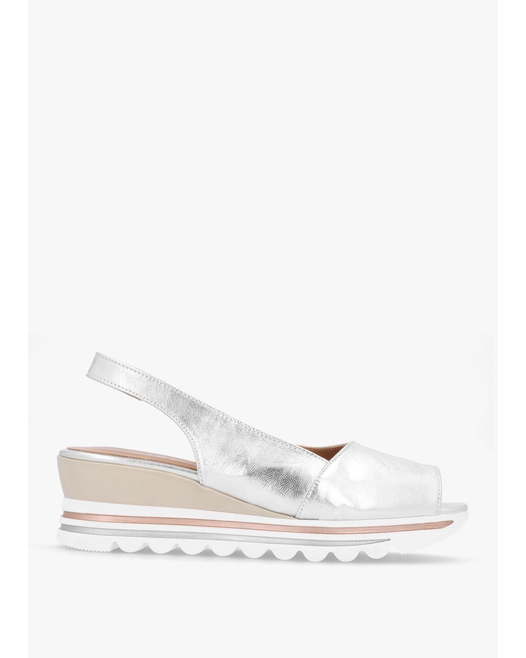 - Canna Silver Leather Peep Toe Wedge Sandals