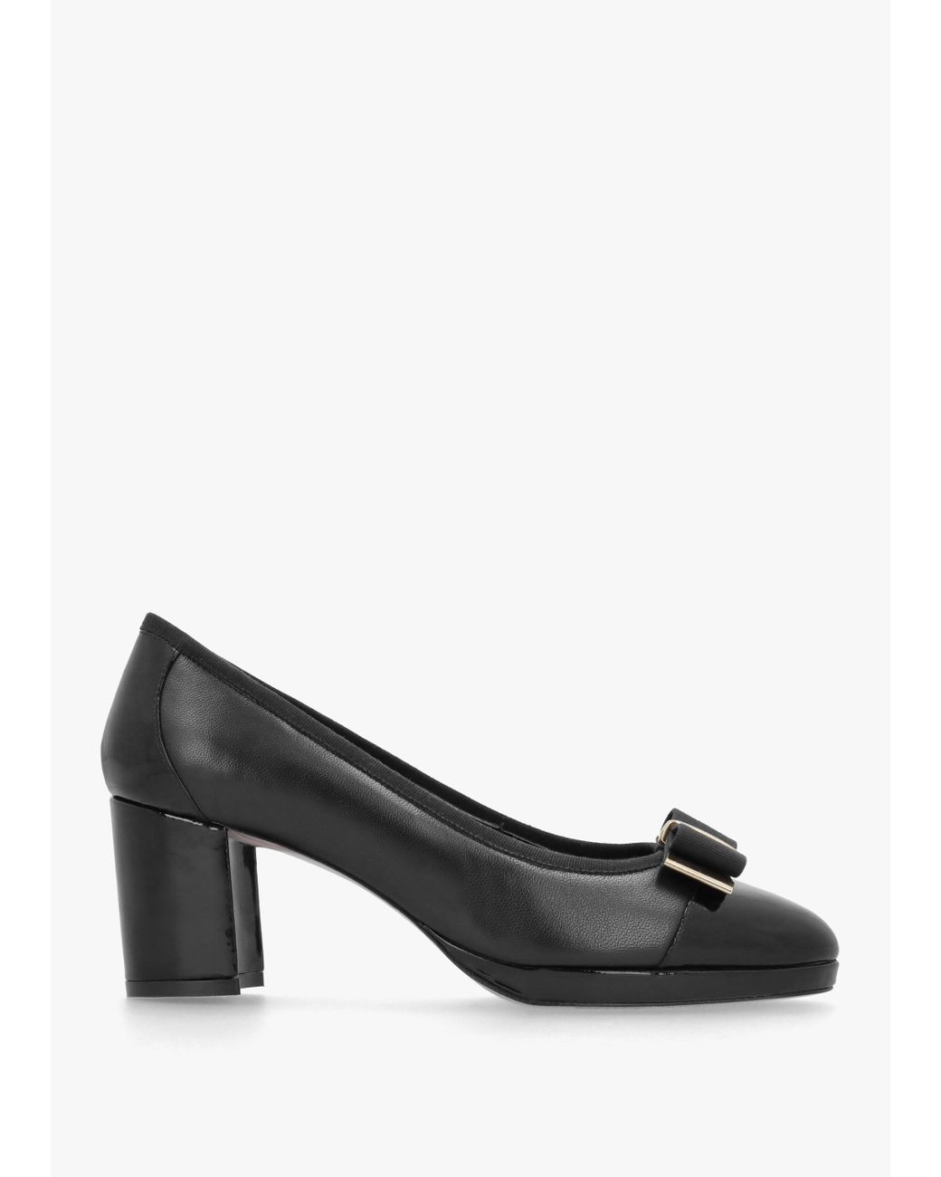 - Paige Black Leather Block Heel Court Shoes