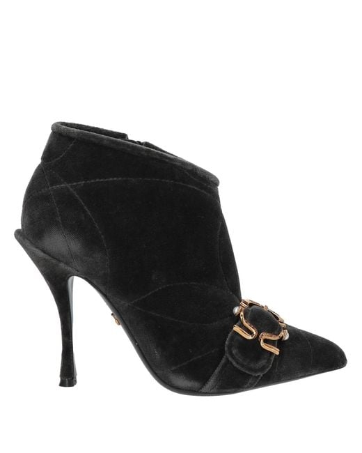 DOLCE&GABBANA. calf boots, velvet, plain colour with appliqués, brand logo, buckle, leather lining, zip fastening, pointed toe, spool heel, covered heel, leather sole, contains non-textile parts of animal origin. 99% Cotton, 1% Elastane.