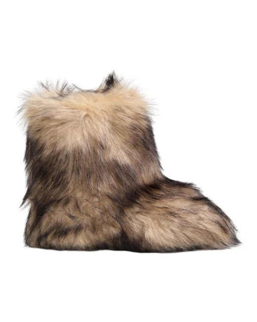 Dolce & Gabbana Ski Short Boots feature plush brown faux ski fur for a luxurious winter look. These short boots combine a cosy silhouette with a leather outsole for comfortable, seasonal wear—ideal for casual or après-ski outfits. Key attributes: Brown | Faux ski fur | Warm | Comfortable | Leather outsole | Cosy interior | Short boot silhouette | Plush faux ski fur upper | Logo details | Composition & care: 78% AC, 22% MA | Interior: 2% SE, 5% VI, 75% Lamb, 8% Goat, 10% Calf | Outsole: Leather Colour: brown