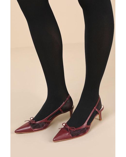 Women's Black Kandi Mesh Leather Bow Slingback Court Shoes
