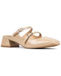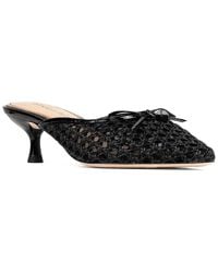 Introducing the Donald Pliner Tria Mule, a stylish and comfortable addition to any woman's shoe collection. Crafted from black faux patent leather and accented with silver-tone hardware, these mules are perfect for everyday