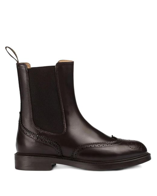 Brown calf leather elasticated side panels brogue detailing round toe pull-tab at the heel flat sole Size: 35. Gender: Female. Material:Calf Leather/Rubber. Colour: brown