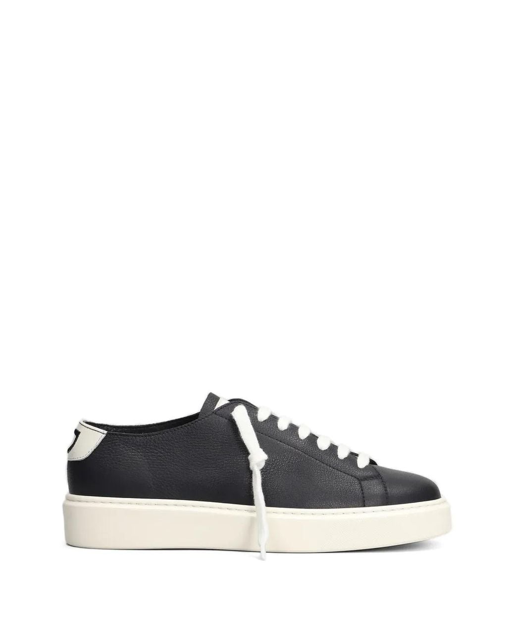 Blue leather pebbled texture front lace-up fastening round toe logo-embroidered heel counter flat rubber sole Size: 43. Gender: Male. Material:Leather/Rubber/Leather. Colour: white