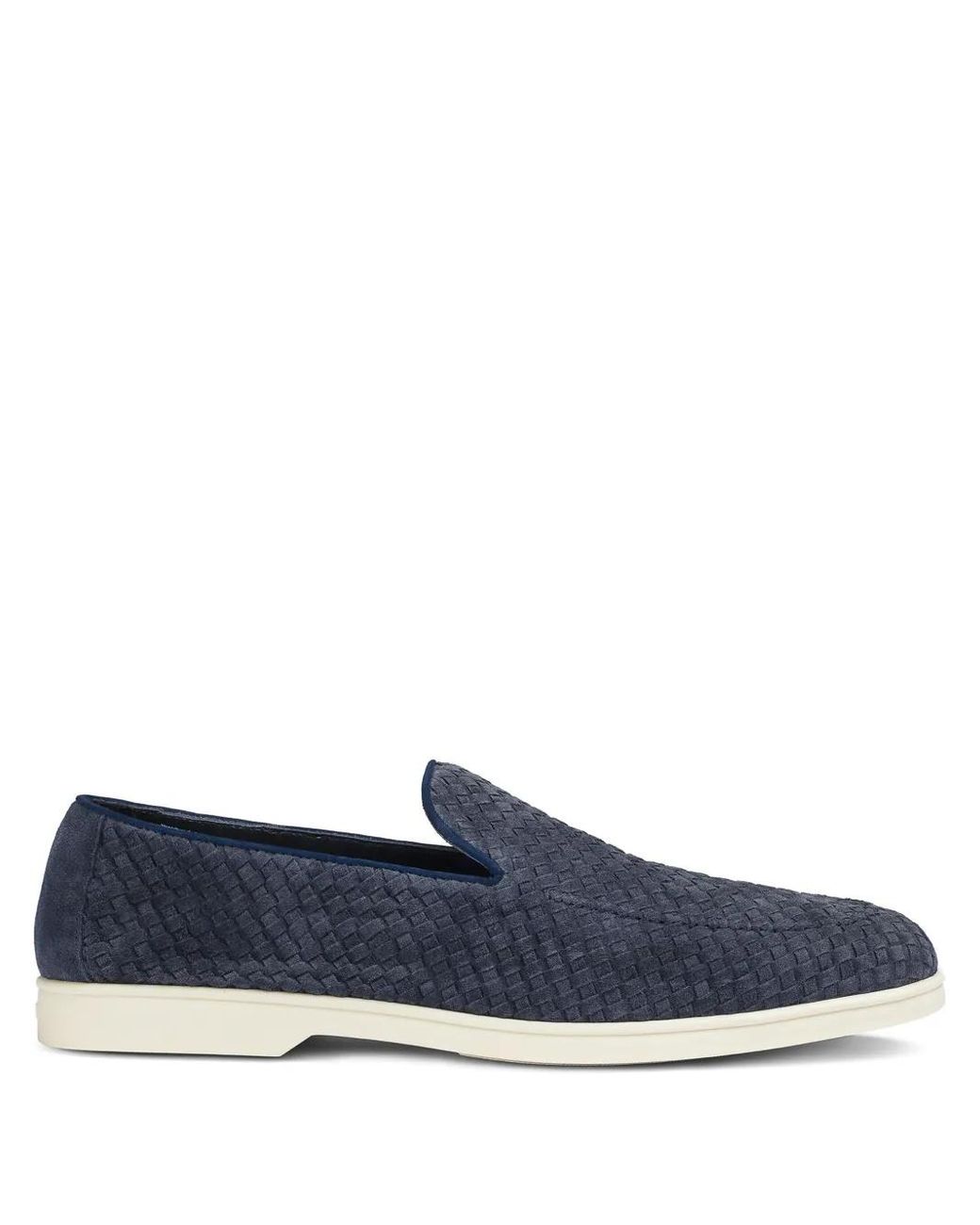 Blue slip-on style almond toe branded insole Size: 46. Gender: Male. Material:Calf Suede/Rubber/Calf Leather. Colour: blue