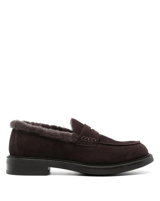 Brown calf suede penny slot moc stitching faux-fur trim almond toe branded leather insole flat rubber sole slip-on style This piece comes complete with a protective dust bag. Size: 36. Gender: Female. Material:Suede. Colour: black