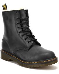 Serena is a winter makeover of the classic 8-eye boot from Dr. Martens. Faithful to its origin, this pair is Goodyear-welted, featuring a branded heel-loop, yellow stitching and Dr. Martens air-cushioned durable sole that is oil-and-fat resistant with good abrasion and slip resistance. Burnished Wyoming leather upper • Rich artificial white fur lining • Goodyear-welted • Dr. Martens air-cushioned sole. Colour: brown