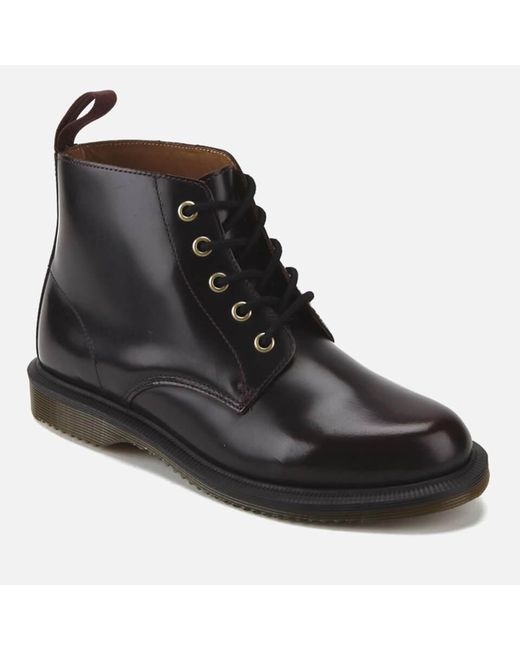 Dr. Martens' black Emmeline boots perfectly bridge the gap between smart and casual. Crafted with a luxe leather upper, this ankle-grazing pair boasts metallic eyelets, a lace-up front and sturdy sole. Slip yours on with rolled-up denim at the weekends.